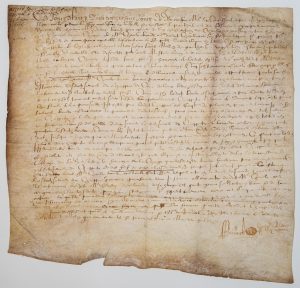 - DELINCOURT (Oise). Collégiale de SAINT-MELLON de PONTOISE (95). Parchemin du 14 Décembre 1608. (30 x 31 cm). Accord pour Messire Charles BOUVIER avec le Chapitre de la l'Église Collégiale de SAINT-MELLON de PONTOISE pour le Fief CHEVAL sis à...