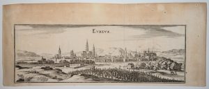 - EURE. City of "ÉVREUX" (27). Engraving XVIIth S. representing the City, with its Cathedral and its ramparts. (15 x 37). State A.