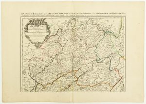 - MAP of 1693: "The County of BOURGOGNE or LA FRANCHE COMTÉ, divided into three large Bailiwicks, namely of AMONT, AVAL, and MILIEU or DOLE, subdivided into their Bailiwicks and Subordinate Jurisdictions. The County of Montbéliard... reunited with the Crown in 1678." By Hubert JAILLOT, Geographer to the King, in Paris, 1693. (Gray, Marnay, Besançon, Monboson, Vesoul, Jussey, Luxeul, Lure, Grandmont, Baume, Montbéliard, Faucogney...) (54 x 76 cm) Condition. A