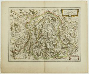 - 17th century map THE DUCHY OF NEVERS." Map of the Païs and Duchy of Nivernois" Amsterdam at Joannis JANSSON's (Nevers, St Pierre le Moustier, La Charité, Donzy, Clamecy, Moulins-Engilbert, Varzy, Château Chinon, Corbigny, Saulieu...) (50 x 60,5 cm) B+ state