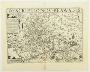 - CARTE XVIIe de L'OISE: "DESCRIPTION DU BEAUVAISIS" Jean LE CLERC excuses. (Pontoise, Beauvais, Compiègne, Gisors, Verberie, Crépy, Grandvilliers) Text on the back. (41 x 51.5 cm) Condition A.