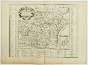 - Map of the Diocese of NARBONNE drawn up by Guillaume Lafond Bourgeois of Narbonne... dedicated to Monsignor Charles LE GOUX DE LA BERCHERE, Archbishop and Primate of Narbonne, President born of the States of Languedoc." In Paris at G. De Lisle's house on the Quai de l'Horloge, with privilege, 1704. With in cartouche the map of the city of NARBONNE and the "Alphabetical Table of Places in the Diocese of Narbonne." (54.5 x 75 cm) Condition A-.