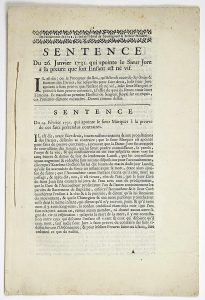 le Premier Président. (à ROUEN); 19 pp grand in-folio. «Le cordon ombilical étant déjà noir: que l'enfant n'a jeté aucun cri, remué aucun membre, ni donné aucun autre signe de vie ni respiration: qu'après la mort de la mère, il y eut contestation entre ceux qui disaient que l'enfant est vivant & ceux qui disaient qu'il était mort...».