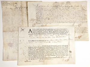 - PARIS. CORPORATIONS. 3 PATENTS OF APPRENTICESHIP (1743/1751): Paris 1744, Patent of apprenticeship of COUTURIÈRE of a Bourlier Master's Daughter in Paris. Stamped parchment 1p in-4° + Paris 1751, Brevet de Maîtrise de BOUCHER, Fils de Maître. 1p in-4° partly printed + Paris 1743, Brevet d'Apprentissage de Félix VOLLÉE dans le COMMERCE DE L'ÉPICERIE. His father is Boucher in Paris. Stamped parchment 2pp n-4°.