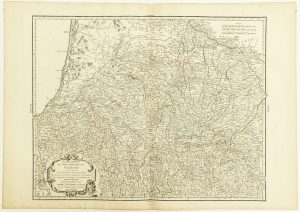 Basse Navarre et Béarn par le Sr Robert Géographe ordinaire du Roy, avec privilège, 1753» (Pau, St Palais, Dax, Grenade, Tarbes, Mauléon, St Girons, Lombez, St Sever, Auch, L'Isle Jourdain, Lectoure, Aire,... ) (54 x 77 cm) Etat A
