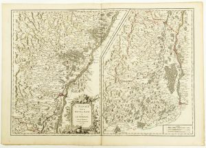 - MAP XVIII: "ALSACE divided into Upper and Lower and the Sundgau by Sieur Robert Geographe ordinaire du Roy, with privilege, 1754" (Strasbourg, Haguenau, Colmar, Belfort, Basel,...) (54 x 77 cm) State A