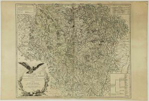 - CARTE XVIIIe: «Carte de la LORRAINE et du BARROIS dans laquelle se trouvent la Généralité de METZ et autres Enclaves,... Dédiée au Roy de POLOGNE Duc de Lorraine et de Bar, par le Sieur Robert de Vaugondy Géographe ordinaire du Roy, de...