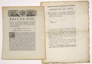 au mois de Juin 1772 - Impr. à Paris, chez P.G. Simon, 4pp in-4° + «Adresse au ROI (Louis XVI), des Administrateurs composant le Directoire du Département de l'EURE, du 24 Juin 1792, l'An 4 de la Liberté.» - Impr. à Paris, de l'Imprimerie Royale, 1792; 2pp in-4°.