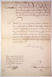 - Louis Joseph de BOURBON Prince de CONDÉ (1736-1818) Prince de Sang Pair et Grand-Maître de France, Gouverneur et Lieutenant-Général pour le Roy en ses Provinces de BOURGOGNE et BRESSE. Chef de l'Armée des Émigrés: Pièce signée du Prince de...