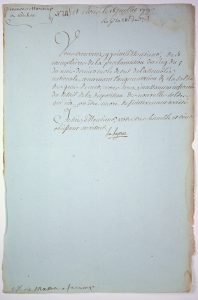- César Henri de LA LUZERNE [1737-1799] Lieutenant General of the Armed Forces, Governor General of the Windward Isles, then Secretary of State for the Navy (he resigned on 26 October 1790). He emigrated in 1791. Letter signed in his own hand, handwritten letterhead "Commerce Maritime & Pêches", Paris, 18 July 1790, to M. LE MASSON à FÉCAMP (76). "You will find enclosed cy, Sir, copies of the Proclamation of the King (Louis XVI) of the 5th of last month on the decree of the National Assembly, concerning the increase of the pay of seafarers. You will soon be informed of the details of the disposition of the new pay which has not yet been definitively decided" - 1p in-folio.
