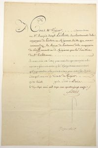 - SWISS REGIMENT. Royal Letter of Appointment written from Paris on 17 May 1791 signed by King LOUIS XVI (Secretary), countersigned by the Claffe de DUPORTAIL - "Mons. de VIGIER having given the S. François Joseph LÜCHEM Sub-Lieutenant of the Company of Lûchem in the Swiss Regiment that you command, the charge of Lieutenant of the Company of REIFF...". - Printed and filled in ink, 1p large folio.