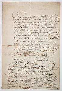 - LOIRET. 1792. REVOLUTION. Certificate of services made in ORLÉANS (45) on July 19, 1792, for François CLINPORTE Second Lieutenant in the GARDE NATIONALE D'ORLÉANS. Exhibit signed by 54 persons; Officers, Non-Commissioned Officers, Grenadiers of the National Guard of Orleans; the Head of the Legion and the Adjutant General, the Mayor and Municipal Officers of Orleans, the Administrators composing the Directoire of the District of Orleans and the Administrators of the Directoire of the Department of the LOIRET. "Let us certify that Sieur François CLINSPORTE, our fellow citizen, has always served with us, since the Revolution, with a regularity which earned him the esteem and friendship of his comrades, who raised him to the rank of Second Lieutenant, that he took the Oath at the various civic celebrations and in particular at the Federations of 14 July 1790, 14 & 22 September 1791, to be faithful to the Nation, to the Law & to the King (Word struck out and replaced by Equality)...» 2-page manuscript (35.5 x 24).