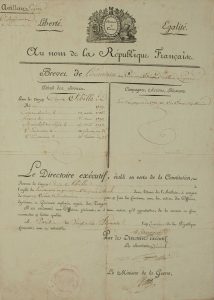 - MOUNTED ARTILLERY. 1796. BREVET DE LIEUTENANT en 1er au 6° Régiment D'ARTILLERIE LÉGÉRE pour le Citoyen Claude SIBILLE, qui a fait les campagnes de 1792,1793, An 2 et An 3 - Piece signed by the Conventionnel LE TOURNEUR, as president of the Executive Board, LAGARDE the secretary general, and PETIET the Minister of War. Nice "Army" label. Large patent partly printed (47 x 33), made in PARIS on 26 Pluviôse Year 4 (February 14, 1796).