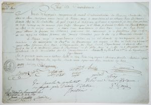 Floréal an 3 (18 Mai 1795). Congé de convalescence pour le Citoyen SECOUTE Chef de Bataillon, blessé au Siège de LYON, pour aller séjourner 8 mois dans son Pays Natal, à ROMORENTIN (Loir-et-Cher). Visé au District de ROMORENTIN (41)