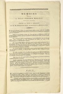- TRADE with HAMBURG (Germany) - "MEMORANDUM (of Trial) for Sieur Pierre MAUPAS, French trader. Against the Widow and Heirs of G.H. SIEVEKING, Inhabitants of HAMBURG - Year 1801 - Impr. 27pp large in-folio.