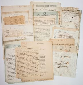 - (YONNE. SEINE ET MARNE) Family BRIZON DU ROURE - 105 rooms. Important correspondence and a few documents from 1811 to 1838 addressed to Count BRIZON DU ROURE, Captain of the Vessel, Knight of the Royal and Military Order of Saint Louis, living in FONTAINEBLEAU (77); to Madame du ROURE, at Madame de TOMBEBEUF's, at the castle of GRANDCHAMP in JOIGNY (89). to Madame de TOMBEBEUF, Comtesse de BRIZON. to Madame la Comtesse Césarine de TOMBEBEUF in PARIS, 78 rue de Lille (Family emigrated during the Revolution for the King's cause.).