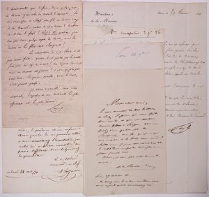 - MARINE. SHIPMENT FROM CHINA. 5 Letters A.S. and 1 L.S.; 1854-1862, to Admiral JAURÈS: L.A.S. Rear-Admiral, Commander-in-Chief Adrien LAGUERRE, April 24, 1854. Concerning a charge against a 13 year old moss. "If you consider a correction to be sufficient, you will stay the proceedings." + Charles LAYRLE State Counsellor, Director of Personnel (2, Congratulations on his appointment to the rank of Vice-Admiral: "You've won your Battle of Austerlitz!", 4pp in-8° and He is appointed to serve on the Commission for the study of various questions relating to clothing..." Paris 1856. 1p in-folio. + L.A.S. L'Amiral Alexandre - Ferdinand PARSEVAL "...You have indeed just completed a very laborious Campaign in many ways that the great affairs of the East will unfortunately make a little small for reward. I have seen with satisfaction that you did not have to wait too long for the Commander's Cross justly acquired in China". 2pp in-8° + L.A.S. of Admiral Victor TOUCHARD (1810-1879) written from the Vessel LE NAPOLÉON on November 3, 1856, (to Admiral JAURÈS). Questions about the China Expedition. 4pp in-8° + L.A.S. Clément de LA RONCIÈRE LE NOURY, Paris 27th October 1862. "My Dear Friend, I thank you for your letters from Suez. I think you are doing well, and may this find you in Saigon..." 1p in-8°.