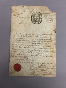 [Agen]. Société des Amis de la Constitution. — 7 septembre 1791. — 1 feuille manuscrite 19,5 x 31,5 cm, vignette d'entête, signatures et sceau de cire.