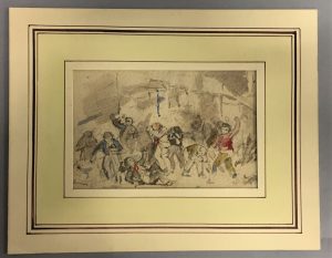 [DESSIN ET AQUARELLE]. — Henry PARK (1816-1871). — Dessin aquarellé 16,5 x 10,5 cm. sous passepartout, non signé. Scène de pugilat.