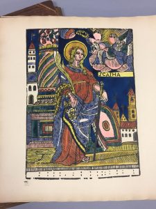 [GRAVURES]. — LAZARSKI (Zygmund). — Teka drzeworytow ludowych dawnych zebranych i Sydanych. Warszawa, LazarsKiego, 1921. 44,5 x 44,5 cm., titre et 58 planches dont 27 réhaussées en couleurs, numérotées 1 à 66. (Manque les planches 4, 30, 35,...