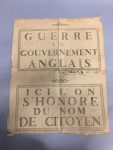 "GUERRE AUX ANGLAIS", "Ici l'on s'honore du nom de citoyen". Affiche An 7, 42 x 52 cm.