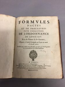 [DROIT]. — Formules d'Actes et de Procédures pour l'Exécution de l'Ordonnance de Louis XIV. Roy de France & de Navarre, donnée à Saint Germain en Laye au mois d'avril 1667. — Paris, Chez Jean Henault, André Cramoisy, Jean Baptiste Coignard,...