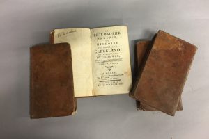 PREVOST (Abbé)]. — Le philosophe anglois, ou Histoire de Monsieur Cleveland, fils naturel de Cromwell. — Rouen, chez Jean Racine, 1785. — 8 tomes en 4 volumes in-12 reliés basane fauve époque, dos à nerfs ornés. (usures d'usage).