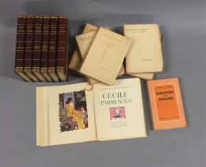 DUHAMEL (Georges). — [Œuvres diverses]. — Cécile parmi nous. — Illustrations de Grau-Sala. — P., Guillot, 1952. — In-8 en feuilles, chemise, étui. 29 bois gravés en couleurs. (chemise et étui très abimés).