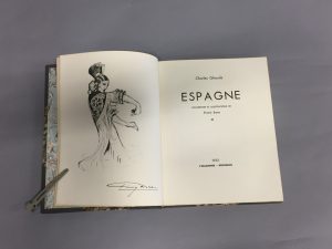 GHEUDE (Charles). — Espagne. — Couverture et illustrations de Firmin Baes. — Bruxelles, L'Eglantine, 1932. — In-4 relié demi-maroquin gris à coins, dos à nerfs, tête dorée, couvertures et dos conservés.