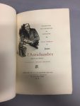 Tirage à 350 exemplaires, celui-ci un des exemplaires réimposés, celui-ci au nom de Romagnol, sur vélin, contenant les eaux-fortes sur vélin et 4 suites : 2 sur vélin et 2 sur Japon, ainsi que les 2 planches refusées en trois états. Joint : le reçu du reglement de Romagnol pour les illustrations signé de Chahine, une carte autographe de Chahine, et le reçu pour le reglement du portrait signé par Malteste.