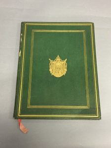 vert, dos lisse à faux-nerfs de filets dorés et à froid, encadrements de filets dorés gras et maigres sur les plats, avec les armes impériales aux centres, tranches dorées. (reliure de l'époque). Quelques piqures.
