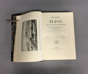 SCHLIEMANN (Henri). — Ilios, ville et pays des Troyens. — Résultat des fouilles sur l'emplacement de Troie et des explorations faites en Troade de 1871 à 1882. — Paris, Firmin-Didot, 1885. — Fort volume in-4, demi-maroquin bleu à coins,...