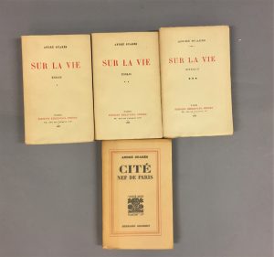 SUARES (André). — Sur la vie. — Essais. — Paris, Émile-Paul, 1925-1928. — 3 volumes in-12 brochés. — Édition originale. — Un des 500 exemplaires sur papier Outhenin-Chalandre.