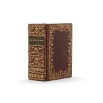 Reliure XVIIIe siècle de plein maroquin rouge, dos lisse orné et doré, pièce de titre de cuir vert, lettrage doré " Breviariu[m] ", encadrement doré sur les plats composés de petits fers, roulette dorée intérieure, filet doré sur les coupes, tranches dorées, gardes et contre-gardes de papier marbré tourniqué. Quelques taches, un feuillet découpé en bas de page (fol. 128), taches un peu plus prononcées altérant le texte des ff. 259v-260), marges un peu courtes par endroits affectant parfois le décor peint.