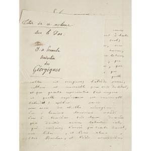 Ce manuscrit présente une traduction française inédite des quatre chants complets des Géorgiques de Virgile avec le texte latin interlinéaire.