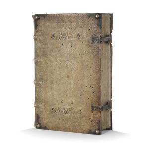Nombreuses galeries de vers atteignant les ais de bois et les marges du texte. Quelques taches. Traces de petits signets de peau.
