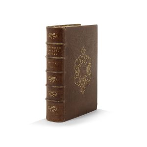 MIRANDULA (Octavium). — Illustrium poetarum flores. — Lyon, Jean de Tournes, 1579. — In-12, maroquin brun, dos à nerf orné, motif doré d'inspiration XVIème au centre des plats, tranches dorées, dentelle intérieure (Hardy-Mesnil).