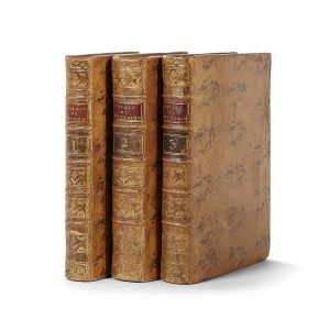Tome I, coiffe sup. manquante, petit trou de vers en pied ; tache. Tome II, un mors fendu. Tome III, manque la dernière page de table.
