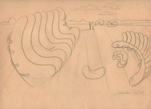 Dessin original de Salvador Dali au crayon sur page beige de carnet à dessins, représentant: