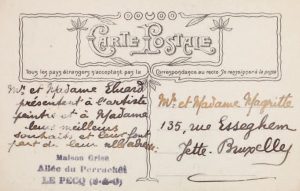 Paul Eluard transmet à Magritte sa nouvelle adresse en même temps que ses meilleurs souhaits.