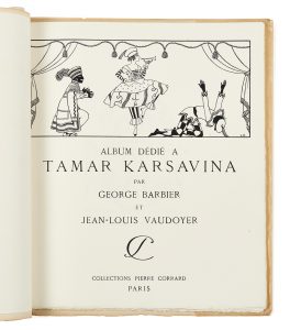 BARBIER (George), — VAUDOYER (Jean-Louis) — Album dédié à Tamar Karsavina. — Paris, Collections Pierre Corrard, 1914. — Grand in-4 (31 x 26 cm), broché, couverture illustrée.