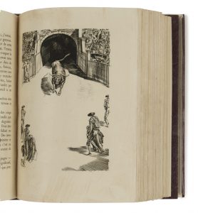 Tirage à 316 exemplaires numérotés ; un des 30 du tirage de tête sur papier blanc du Japon à la forme (n° 12), comprenant une suite des grandes compositions en premier état sur papier de Chine, une suite en état définitif sur papier de Rives et un grand dessin original au crayon, signé.