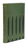 titre doré à la chinoise, tête dorée, encadrement intérieur de veau vert céladon avec pièces de maroquin vert sapin aux angles, listel de même maroquin et filet doré, doublures et gardes de soie vert jade, couvertures et dos conservés, chemise et étui (Marot-Rodde).