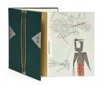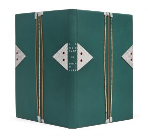 certaines collées, d’autres mobiles, dos lisse avec titre poussé au palladium, doublures de veau vert bronze bord à bord, gardes de peau velours sable, couvertures et dos conservés d’un seul tenant, boîte (F. Brindeau - 2012).