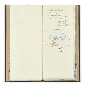 Exemplaire enrichi, au faux-titre, de deux dédicaces autographes à Maurice Houdayer, de l’auteur (« Pour Maurice Houdayer, ce voyage aux antipodes, bien sincèrement. Nice le 10 V 94 ») et de l’artiste (« Corps-dialement. Hé- Diable-ment. Julius ») qui a assorti la sienne d’une petite aquarelle originale supplémentaire.