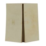 ÉLUARD (Paul) — « Sommes-nous deux ou suis-je solitaire ». — Paris, Au vent d’Arles, 1959. — In-8 étroit (23 x 11,6 cm), en accordéon, plats de vélin ivoire, Monogramme EE doré sur le premier, boîte de chagrin rouge portant le même...
