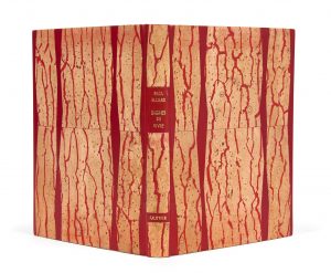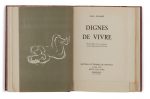 ÉLUARD (Paul) — Dignes de vivre. — Paris, René Julliard, Sequana, Éditions littéraires de Monaco, 1944. — In-12 carré (19,5 x 15,3 cm), veau carmin, sur les plats et le dos lisse, décor zigzagant de bandes de liège monté sur papier...