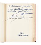 « À Valentine [Hugo ?], parfaite, et les feuilles de notre azur sont sur fond d’or, très affectueusement. Paris, août 1944. »