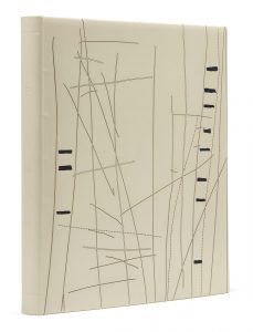 ÉLUARD (Paul) — Poèmes. —S. l., Bibliophiles du Palais, 1970. — Pet. in-4 (32,1 x 25 cm) monté sur onglets, box grège, plats ornés d’un décor de filaments aux contours incisés au laser, certains en pointillés, complété de petits...