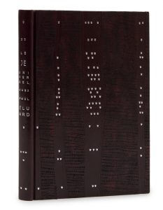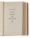 EMMANUEL (Pierre) — Le Je universel chez Paul Éluard. — Paris, GLM, [1948]. — In-12 (15,8 x10,8 cm), bradel de veau prune avec petits carrés au palladium sur les plats, bandes de papier mordoré, dos lisse avec titre-auteur-date à l’œser...